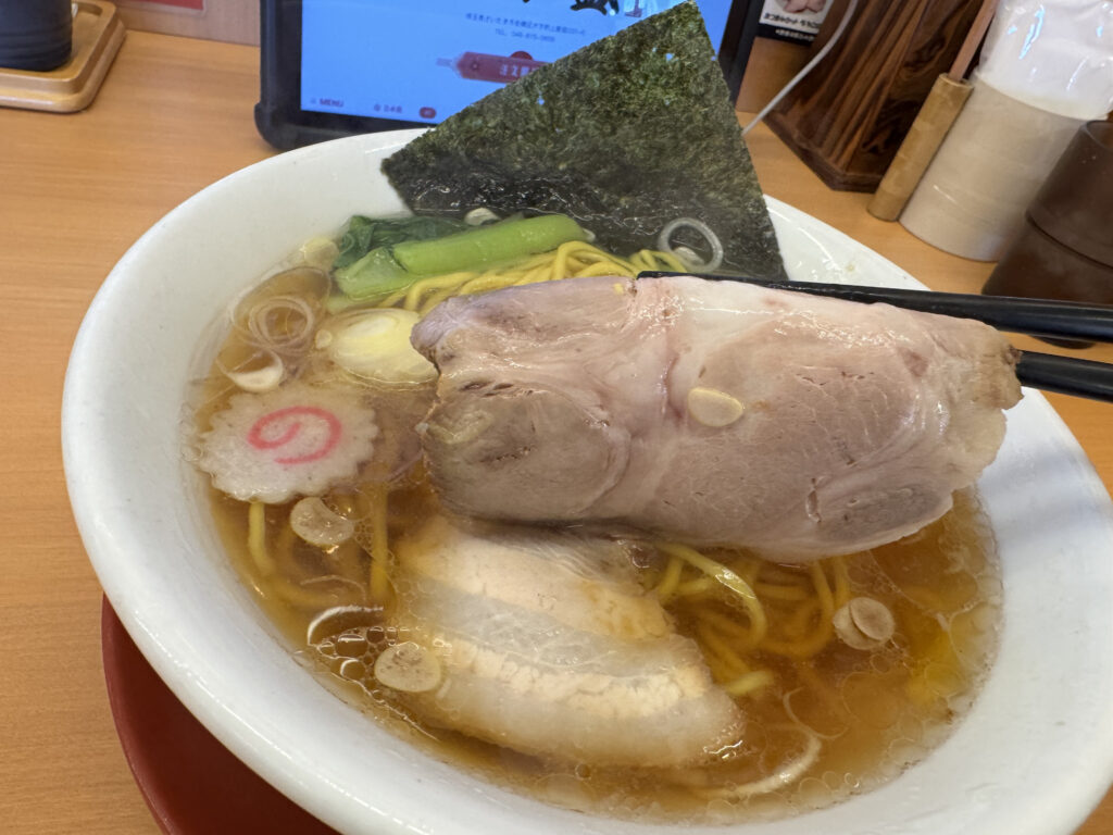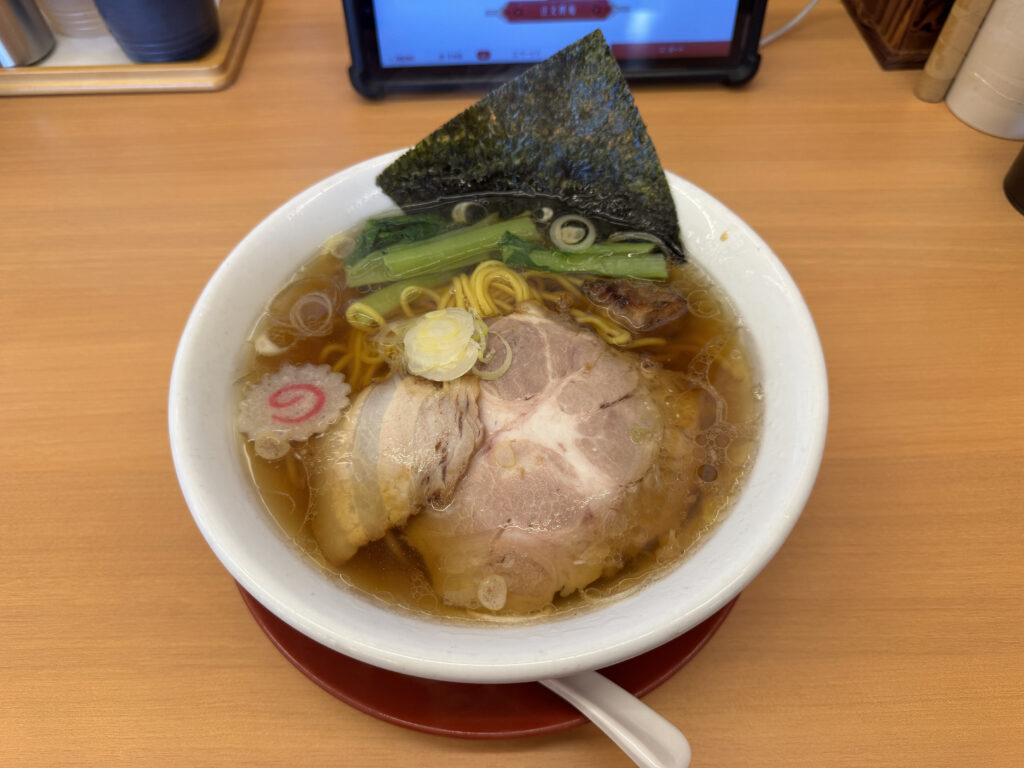 定番の醤油ラーメン830円を細麺で注文しました。
