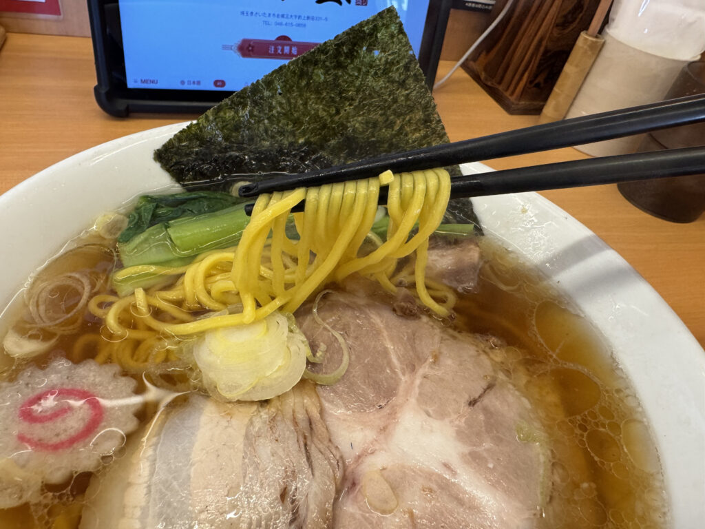 気持ち油多めの佐野ラーメンぽいスープに歯切れのいい中細麺。